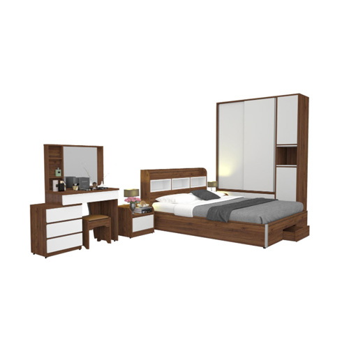 • Bộ sản phẩm phòng ngủ người lớn, sử dụng chất liệu gỗ melamine cao cấp kết hợp giữa hai tông màu gỗ và trắng.