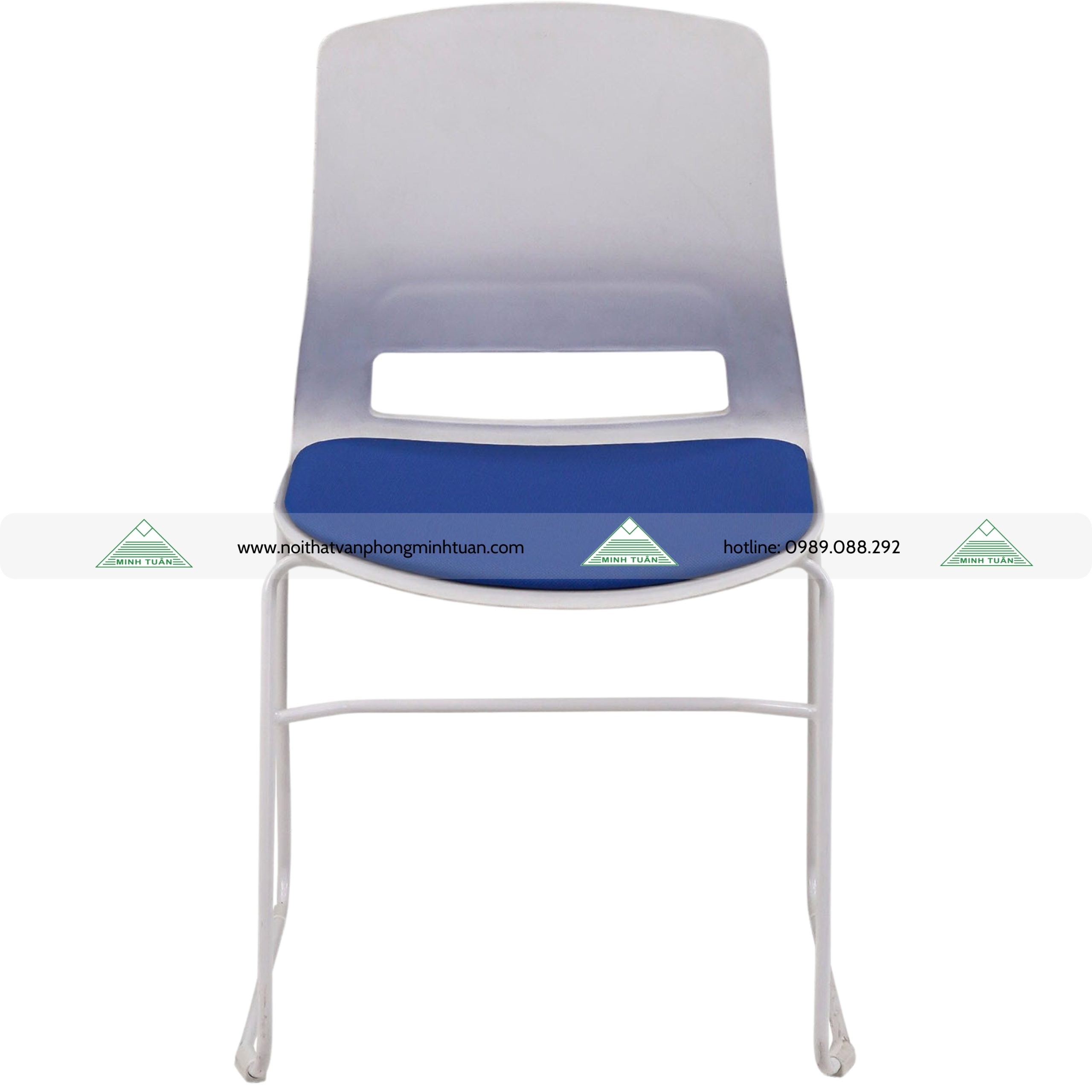 - Ghế hội trường khung thép đệm tựa nhựa màu trắng, đệm ghế phủ bọc vải.
