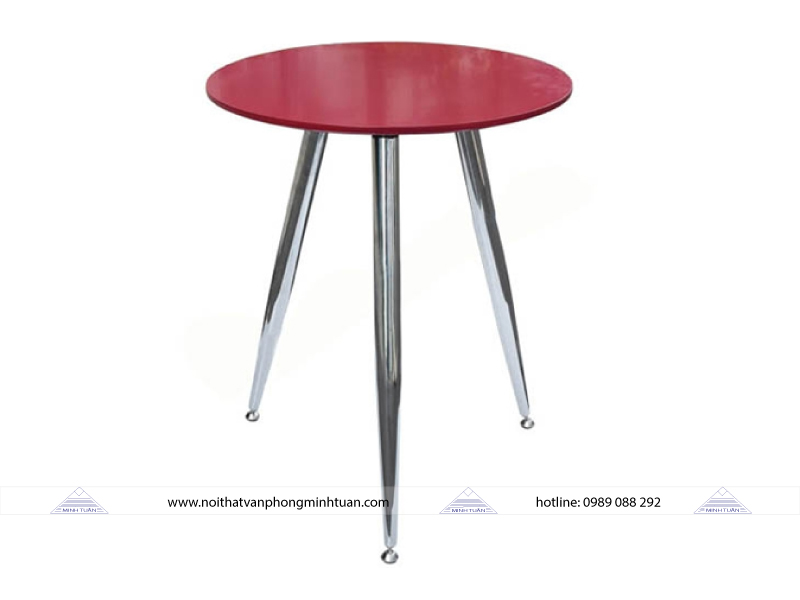 - Mặt bàn tròn làm bằng gỗ công nghiệp phủ sơn hoặc mặt kính sơn.
