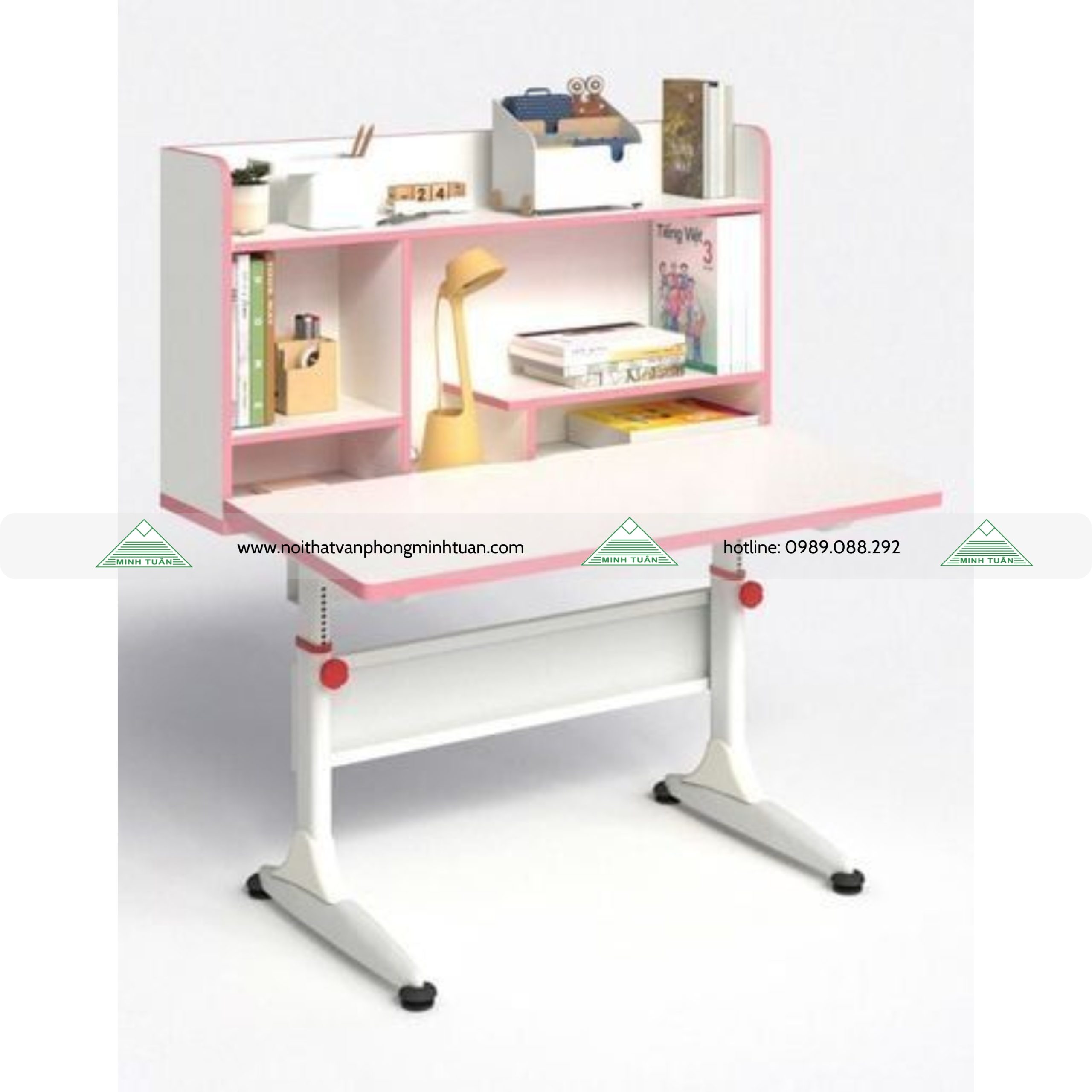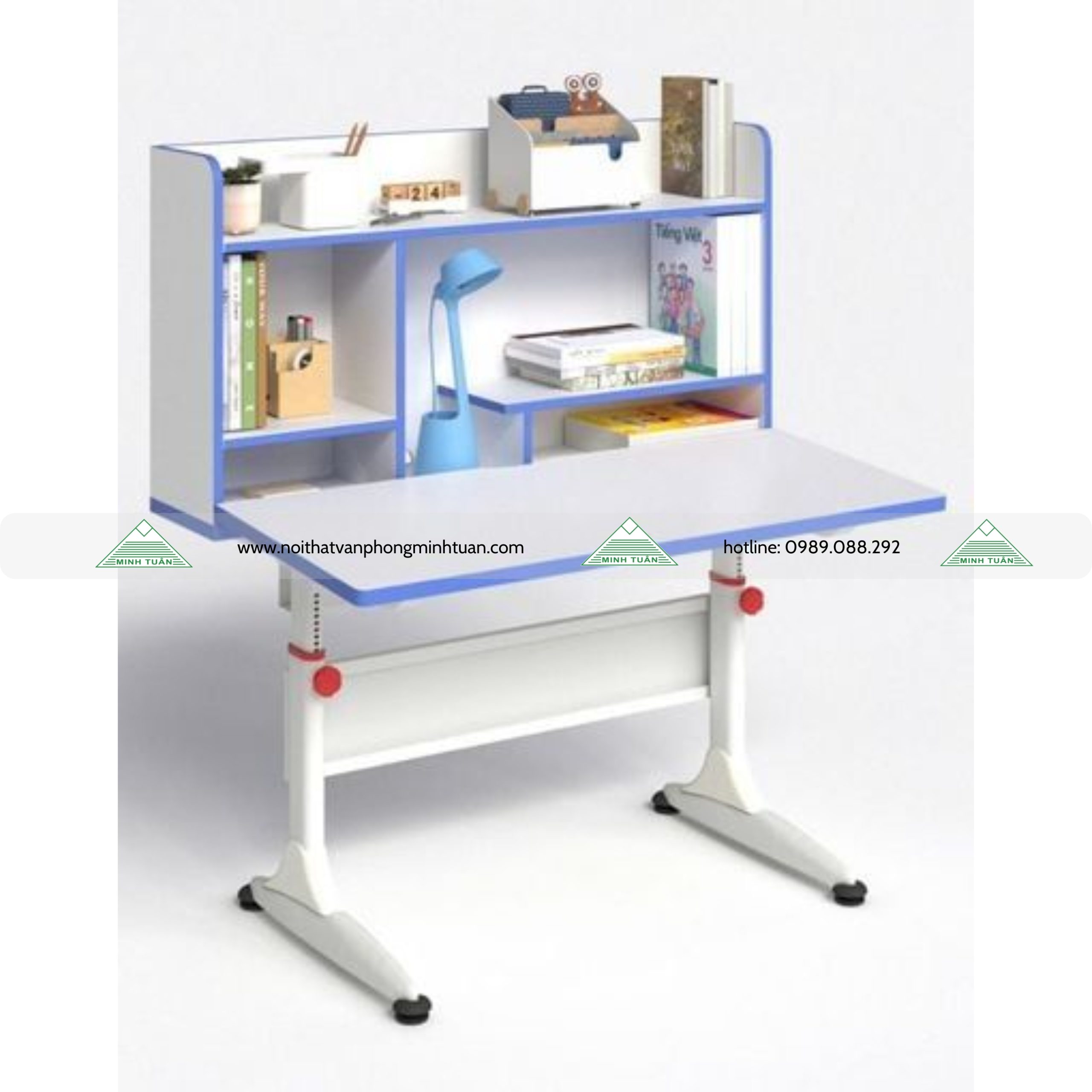 Bàn BHS01D thuộc dòng bàn học sinh nâng hạ cơ học có kệ gỗ liền, điều chỉnh được độ cao và độ nghiêng của mặt bàn thuộc sản phẩm mới của Nội thất 190. Các tính năng điều chỉnh linh hoạt luôn phù hợp hoàn hảo với trẻ ở mọi giai đoạn phát triển và cung cấp sự hỗ trợ tối ưu cho hệ thống cột sống và cơ bắp, giúp trẻ ngồi học thoải mái trong 1 khoảng thời gian dài.