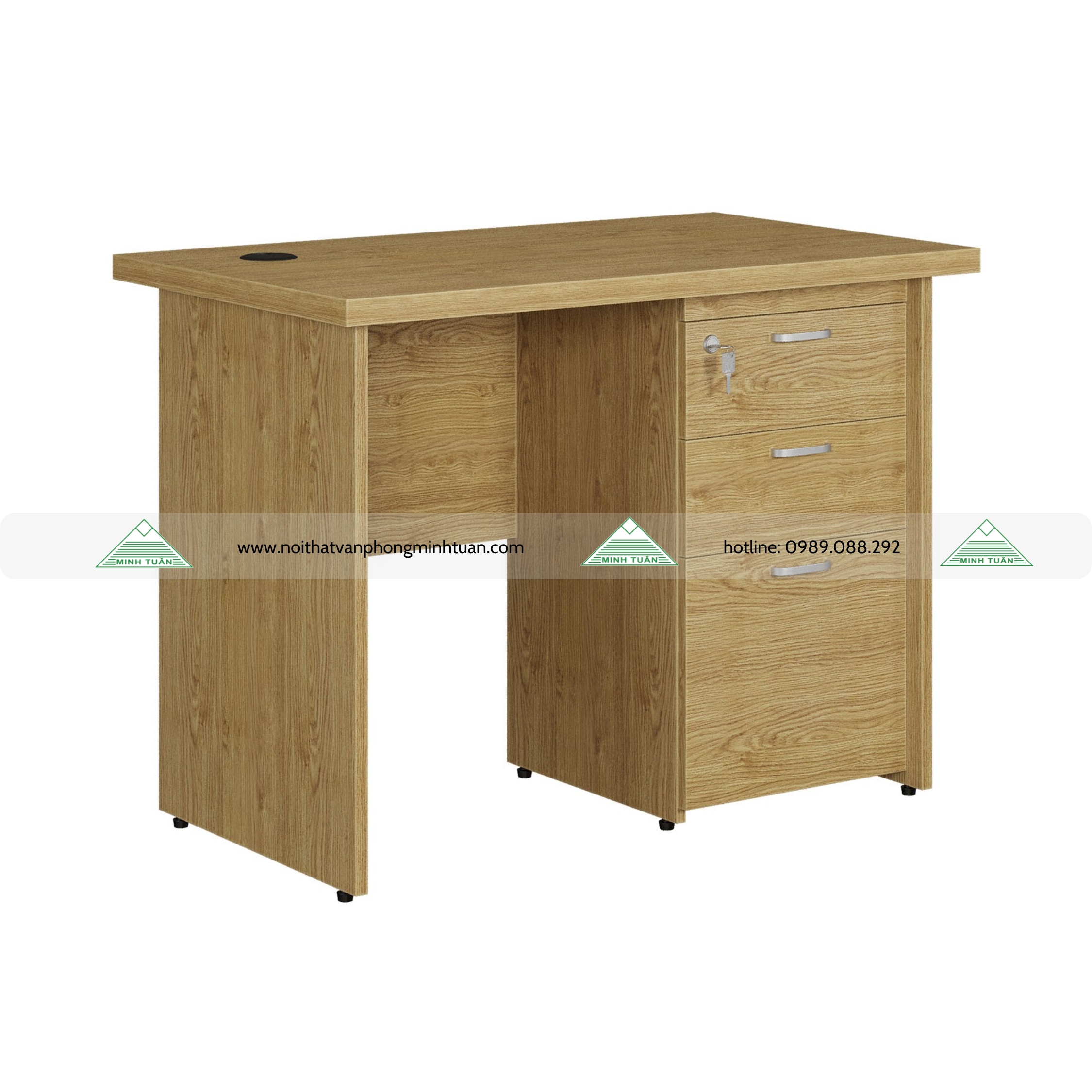 - Hộc sát đất 3 ngăn kéo có khóa dàn liền bàn.