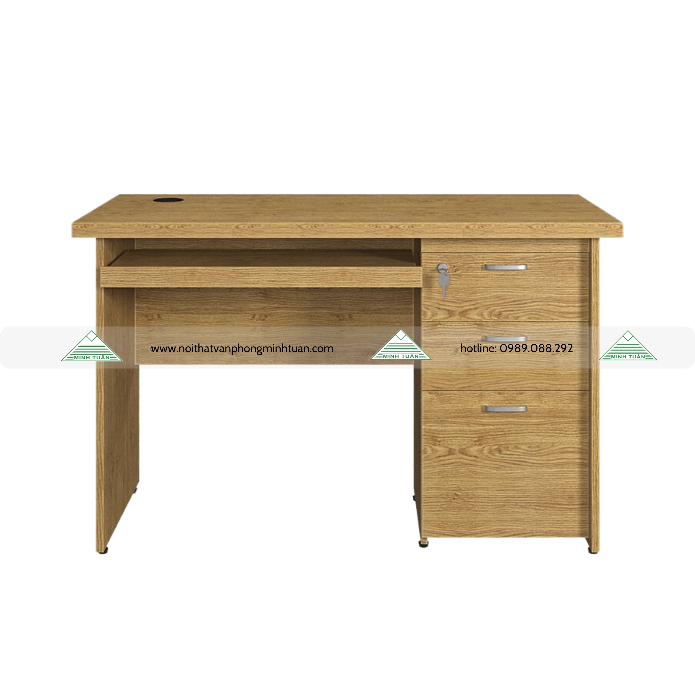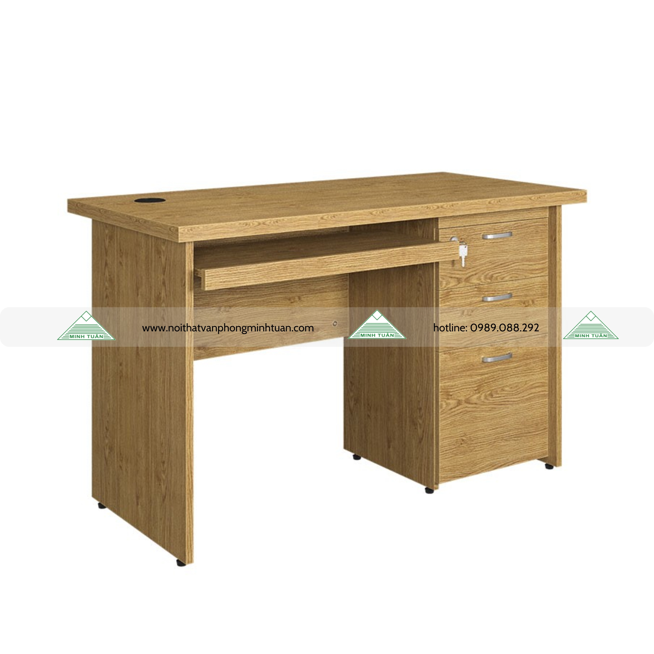 - Hộc sát đất 3 ngăn kéo có khóa dàn liền bàn.