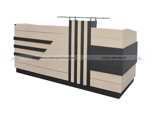 - Sản phẩm bàn quầy lễ tân BQ101-18 có sự kết hợp hài hòa giữa hai tông màu sáng tối phù hợp cho phòng lễ tân công ty, khách sạng, nhà hàng…
