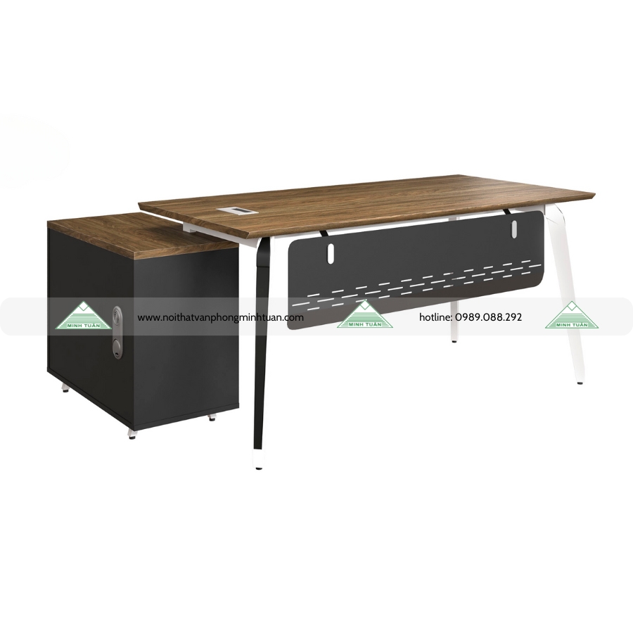 Bàn trưởng phòng Stellar STP1880C16 có tủ phụ liền bàn sử dụng phụ kiện cao cấp, khóa số và núm nắm kiểu mới, nắp thông hơi kết hợp luồn dây cpu hiện đại. chân bàn thép dập định hình sơn trắng kết hợp ốp đen.