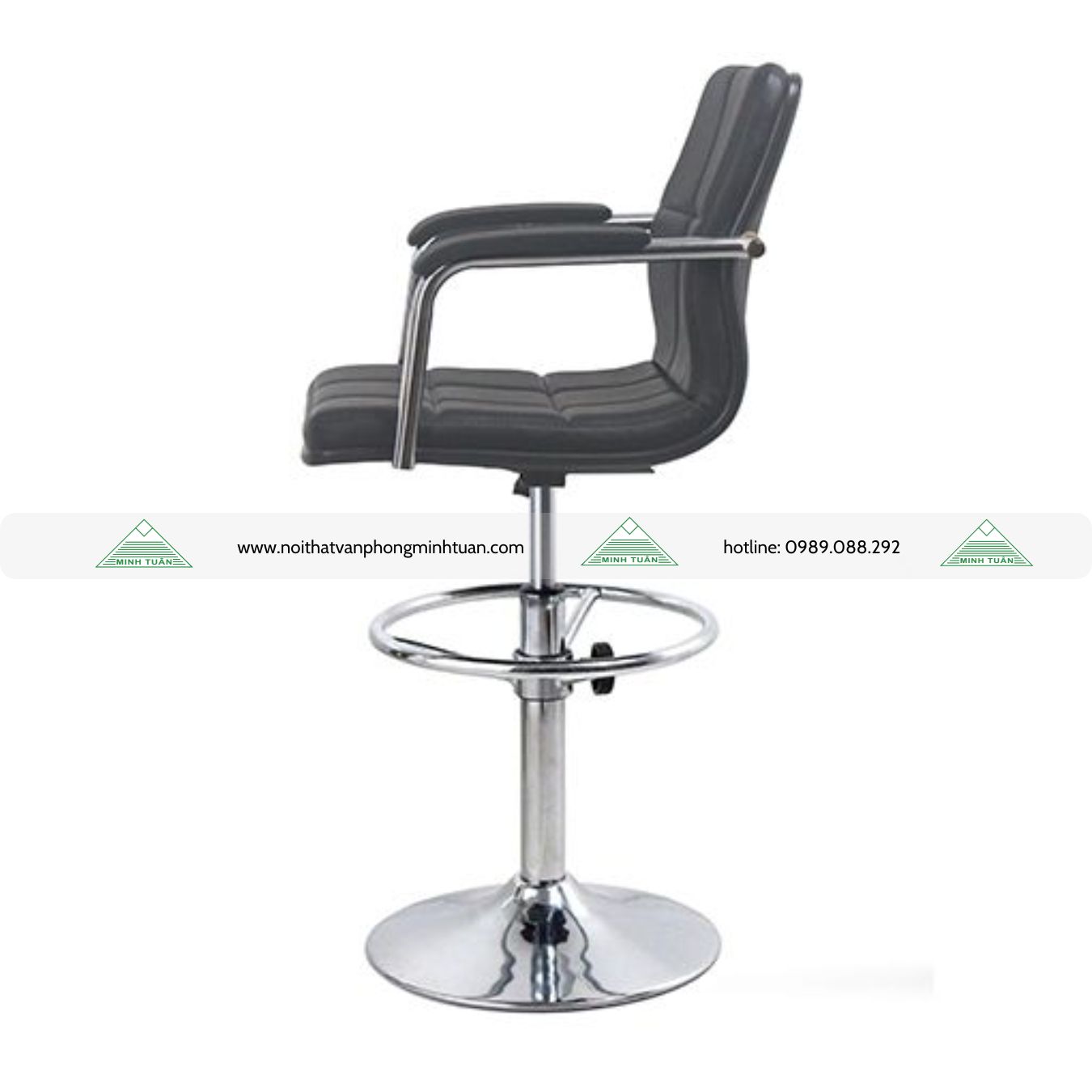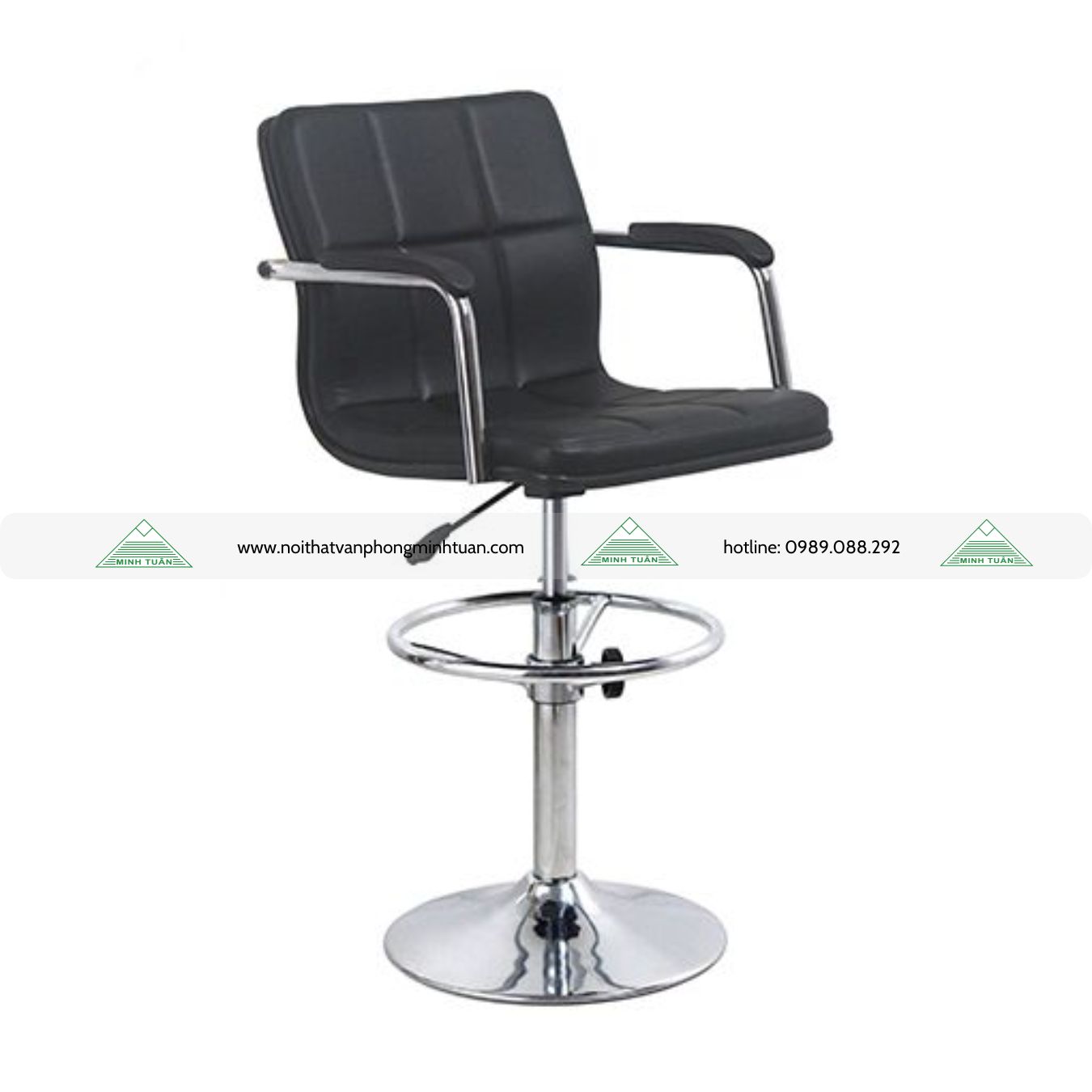 Ghế Bar B234 là sản phẩm thuộc nhóm ghế bar của Nội Thất 190. Ghế lưng liền bọc da PU, đính kèm tay thép mạ Niken-Crom đệm PU đúc màu đen. Chân thép đế mạ Ø450.