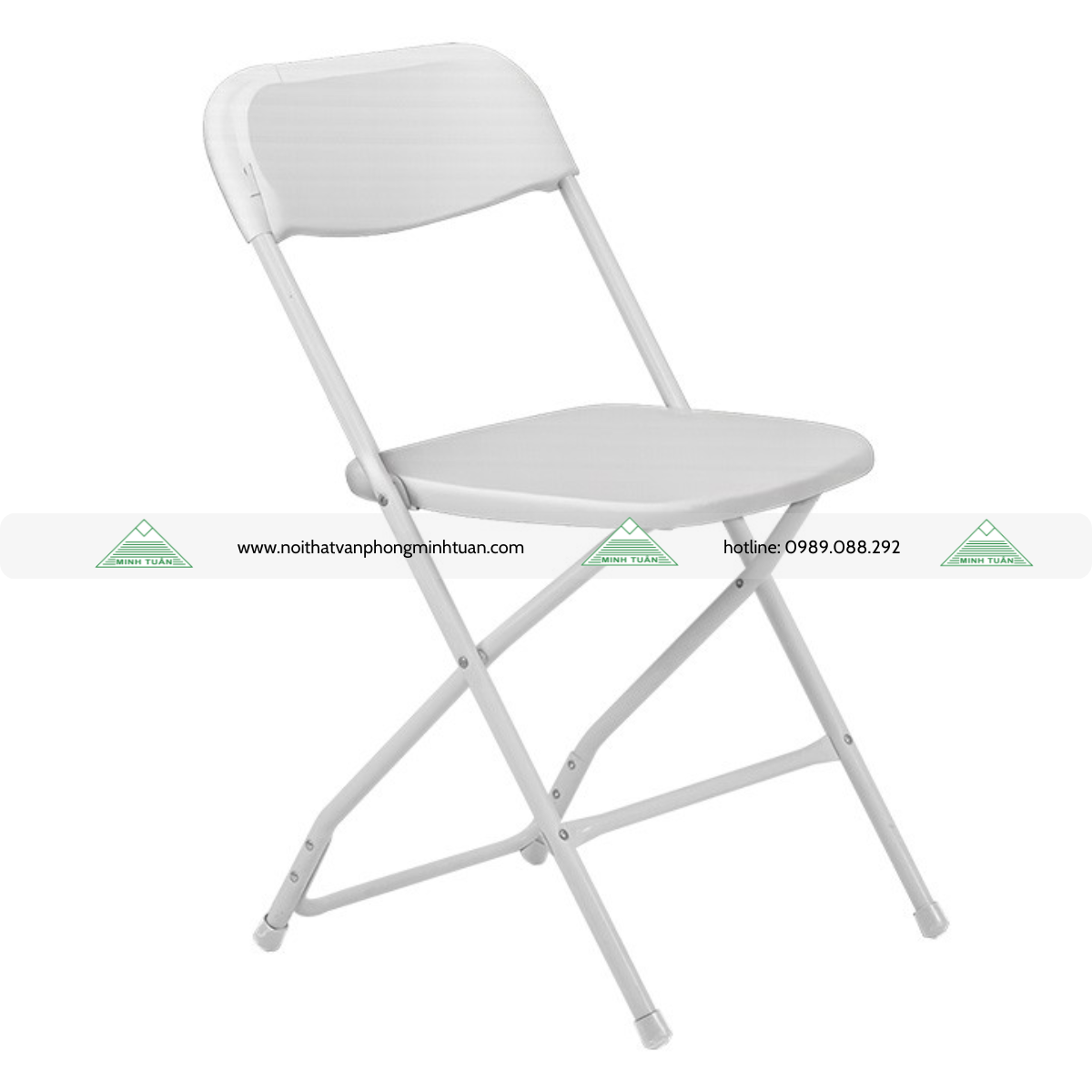 - Ghế gấp khung thép sơn tĩnh điện màu trắng, đệm tựa nhựa.