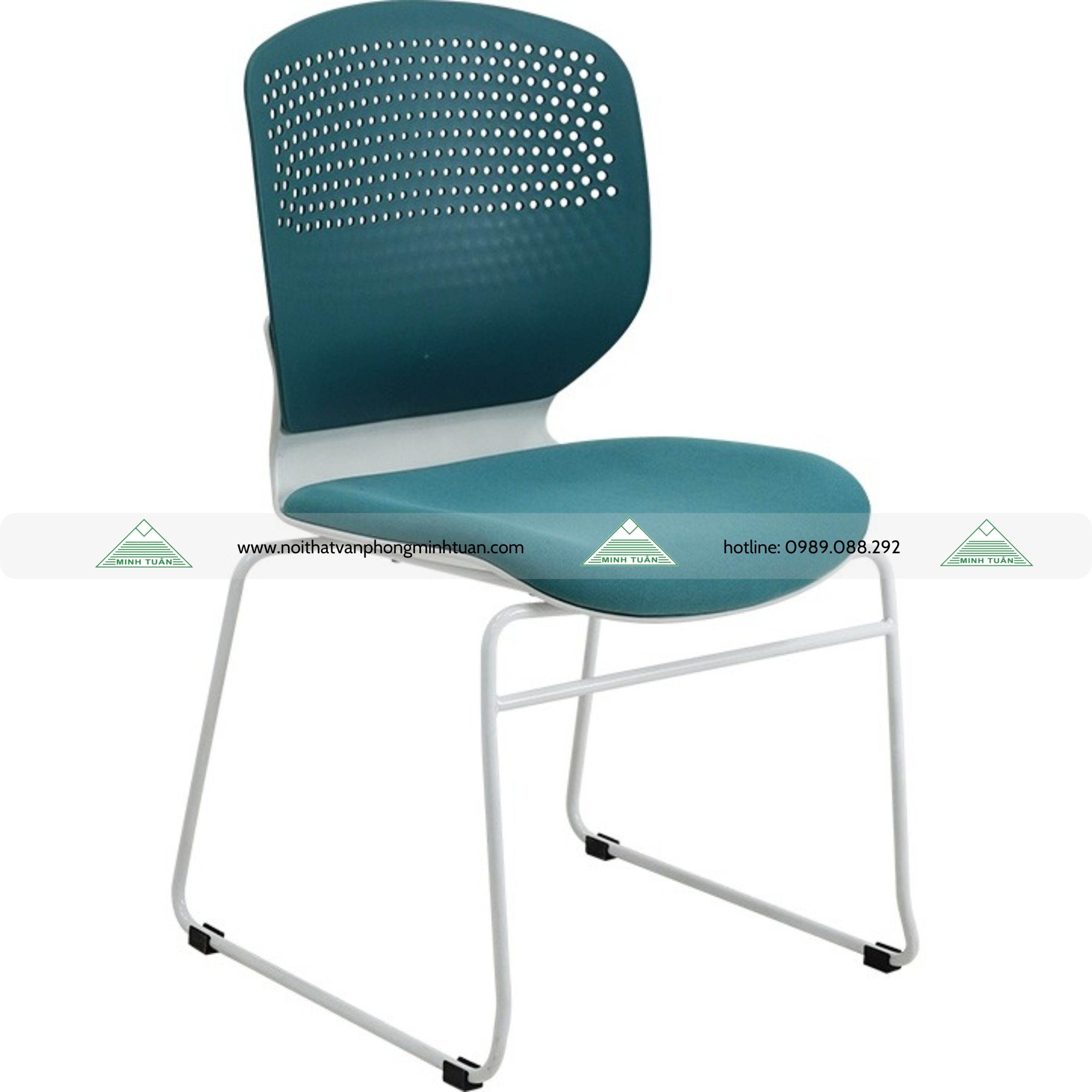 - Ghế hội trường chân quỳ khung thép kết hợp đệm tựa nhựa, đệm ghế bọc vải cùng màu tựa.