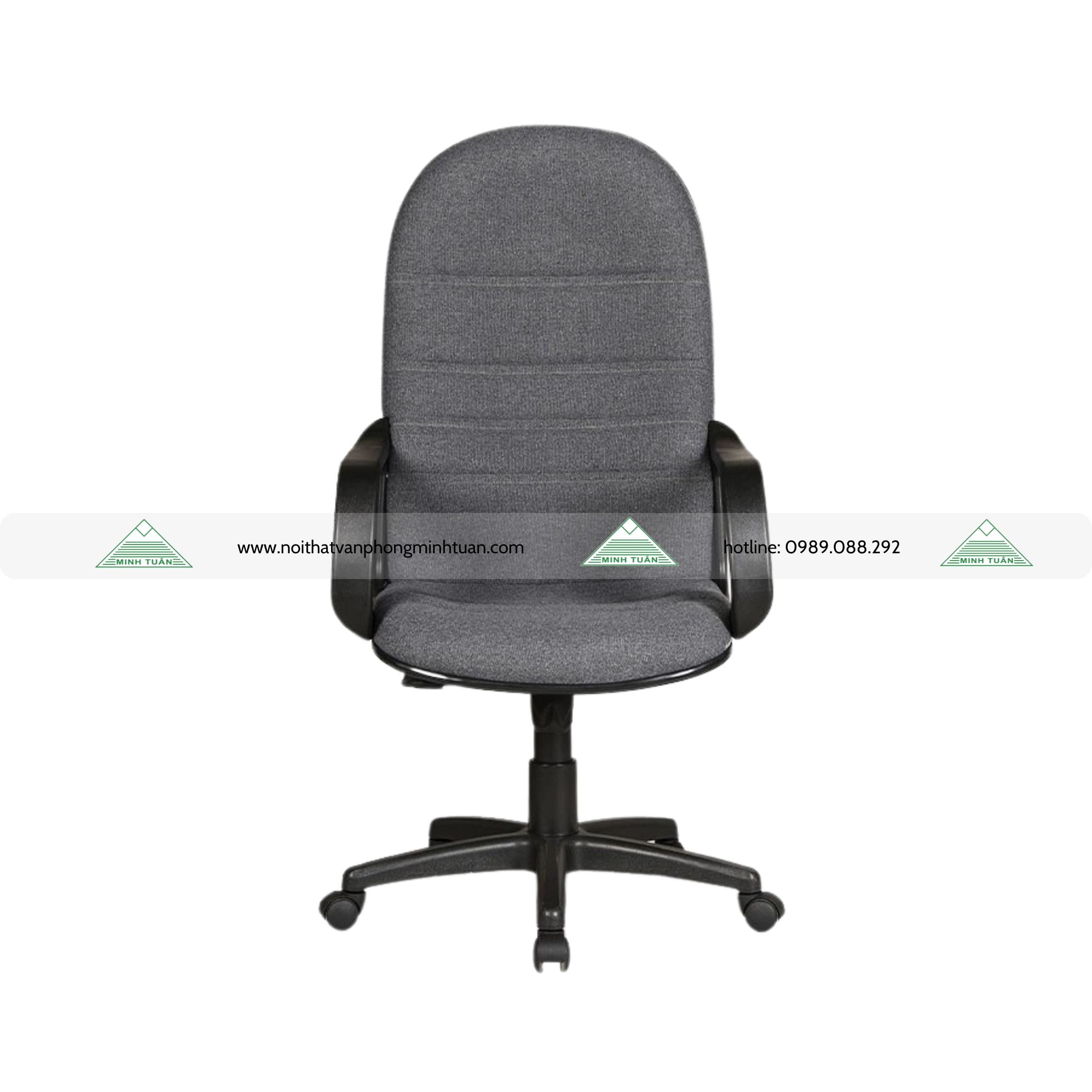 - Ghế lưng cao bọc vải, đệm tựa liền khối, chân tay bằng nhựa.
