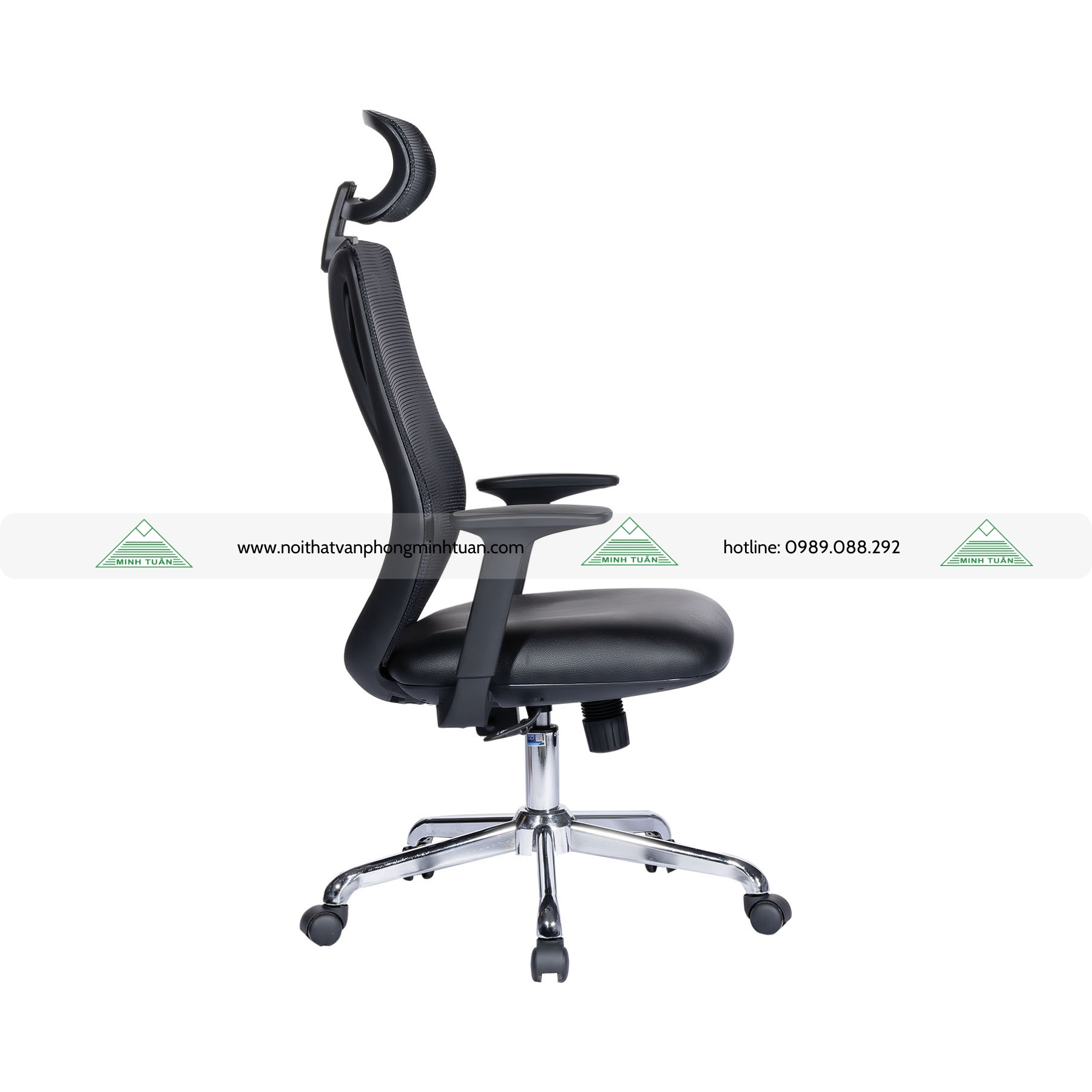 - Ghế lưới lãnh đạo lưng cao, đệm bọc PVC, khung tựa nhựa bọc vải lưới.