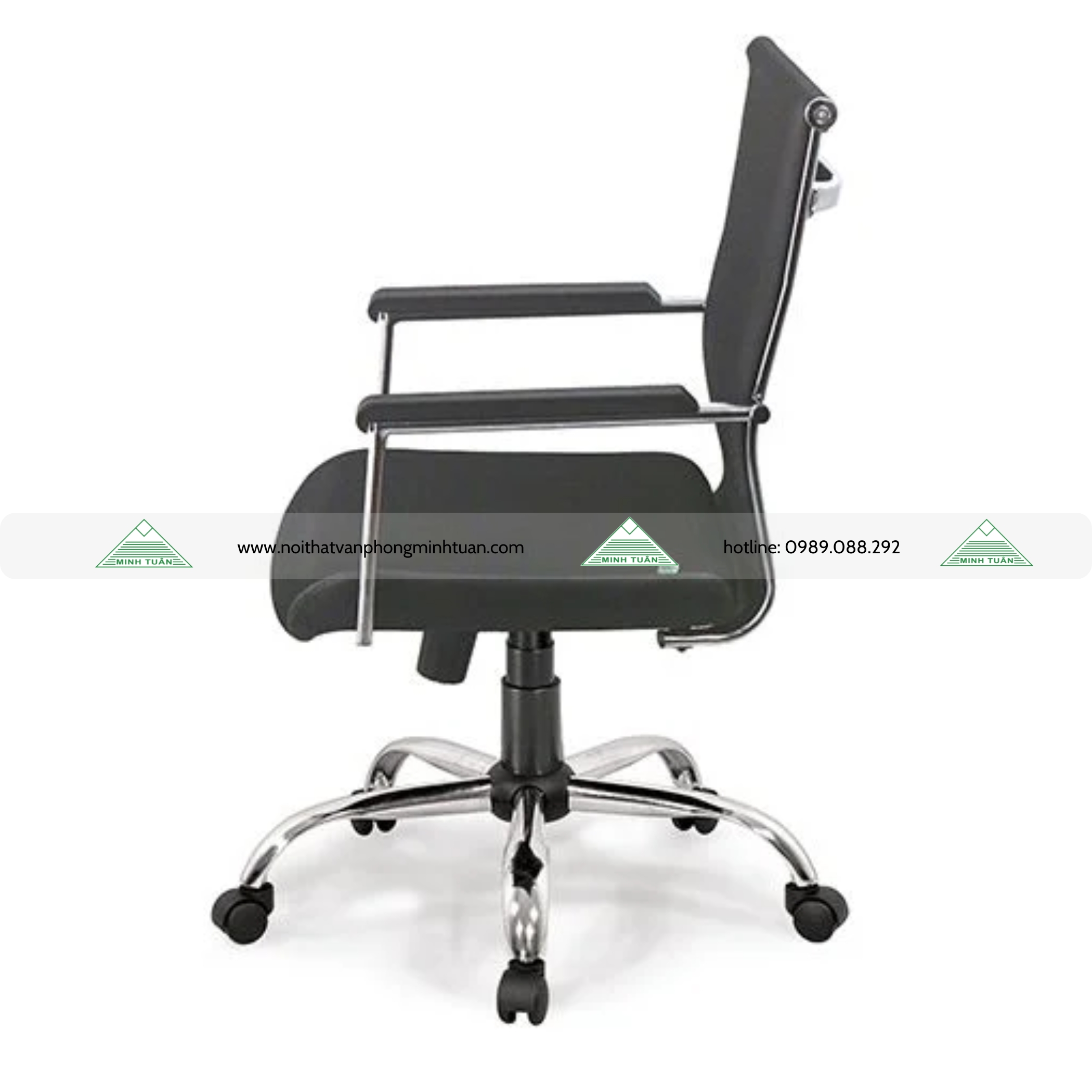 Chất liệu: Khung thép mạ, lưng và đệm bọc lưới, chân sao mạ. Ốp tay PU đúc