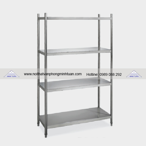 Giá gồm 4 tầng, mặt đợt bọc inox dày 0,8mm.
