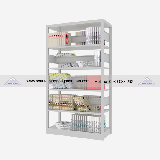 Giá thư viện 1 khoang, các đợt tạo thành 5 ngăn cách đều nhau.