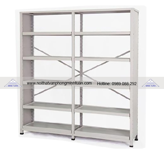 Giá bao gồm: Giá kép 2 khoang, 1 mặt, có 10 ngăn và 10 đợt, 1 nóc kép.