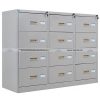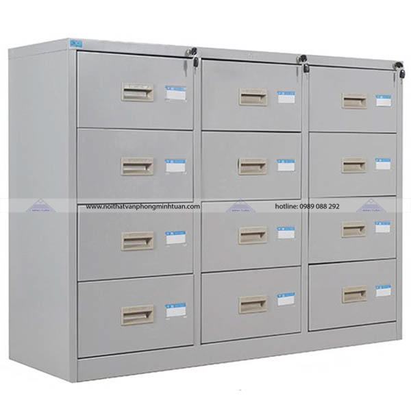 - Tủ gồm 3 khoang, mỗi khoang có 4 ngăn kéo, dùng chung một thanh khóa dàn.