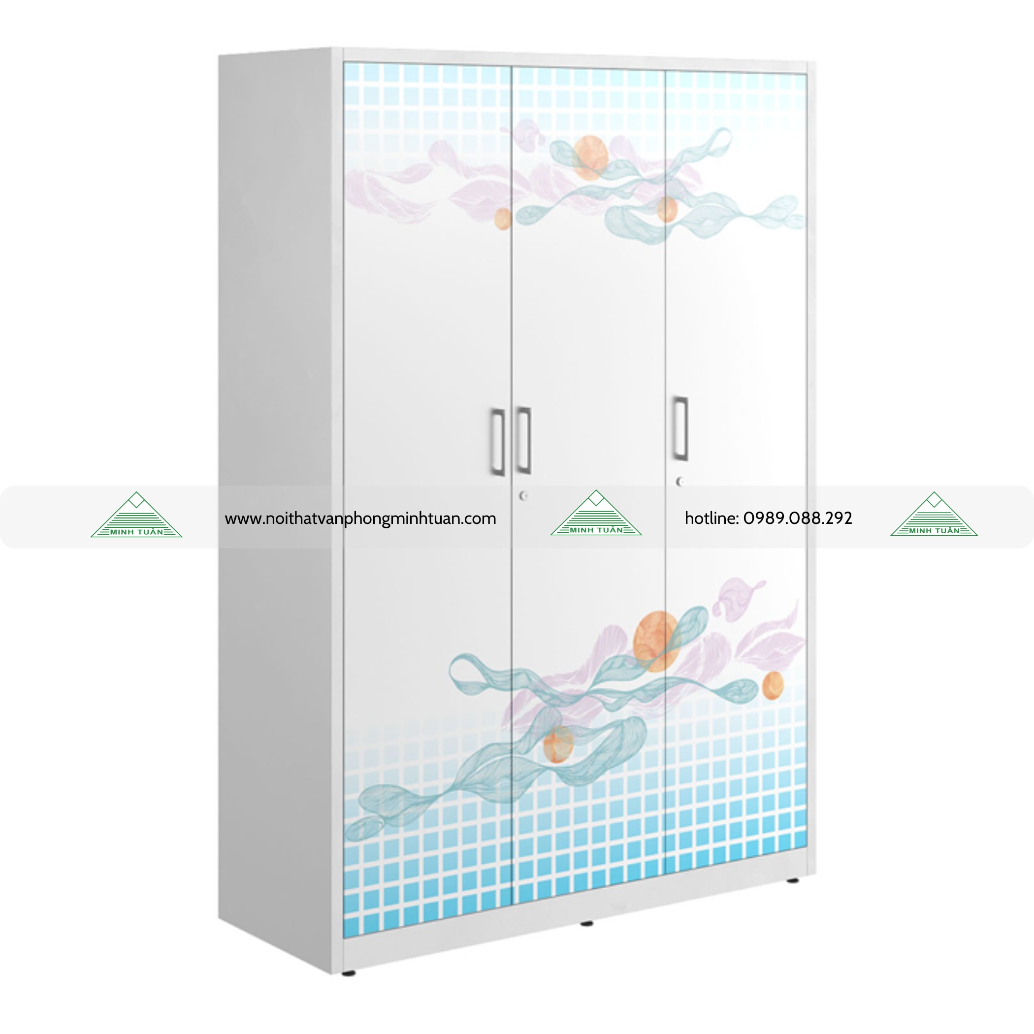 - Đặc điểm của công nghệ in UV cho các cánh tủ sắt hàng gia đình: Phần cánh được in trang trí hình họa tiết bằng công nghệ in UV.