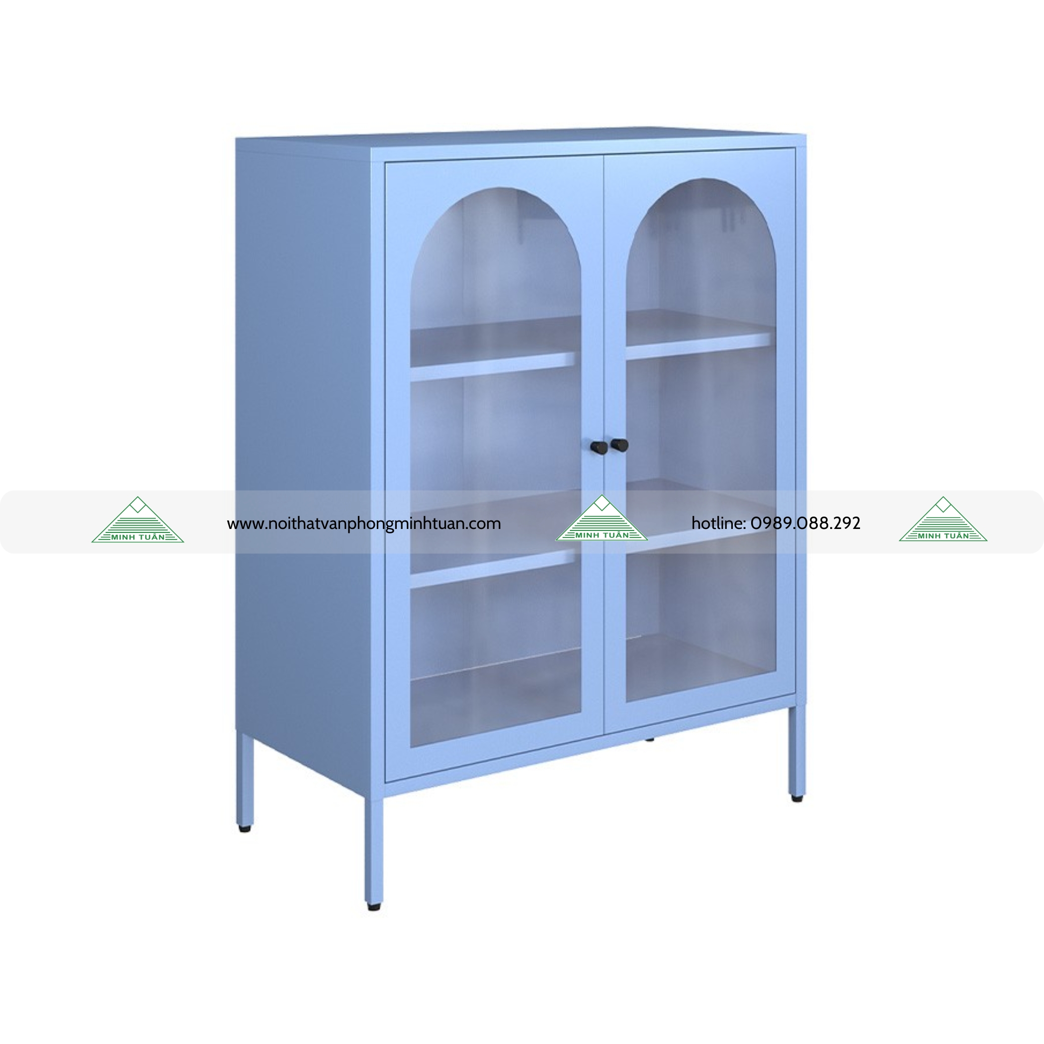 - Tủ sắt để đồ gia dụng gồm 2 khung cánh kính mở, phía trong có 2 đợt di động.