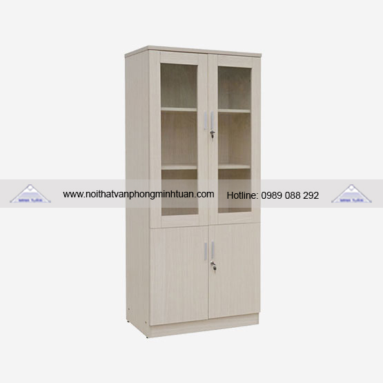 Phần trên có 2 cánh kính khung gỗ mở, bên trong có 2 đợt cố định.