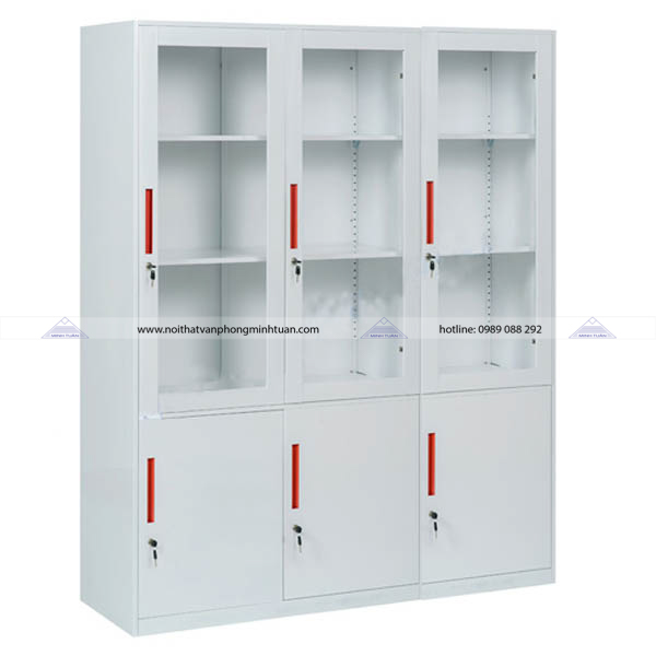 • Tủ thiết kế 3 khoang cánh kính kế hợp 3 khoang cánh mở bên dưới