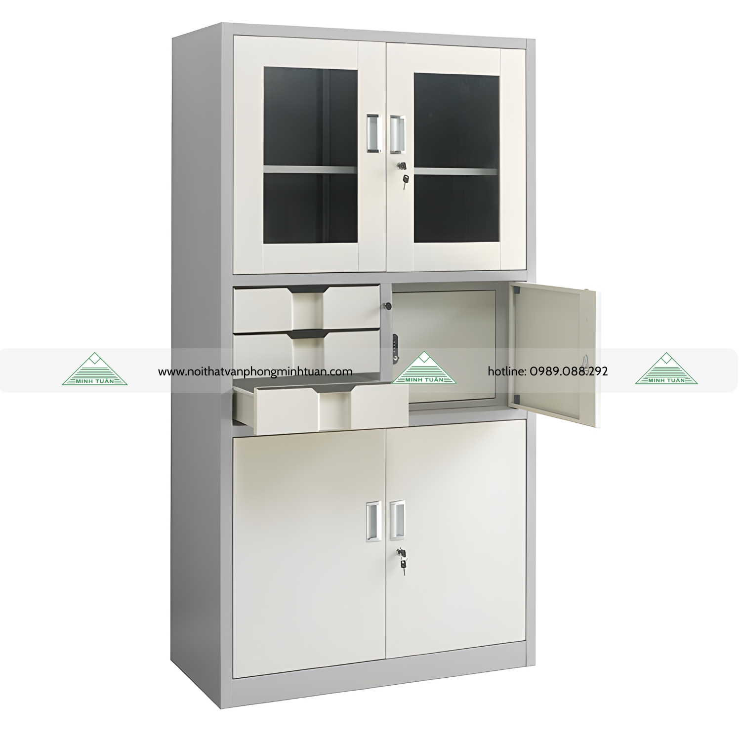 - Tủ sắt có khoang trên cùng có 1 đợt di động.