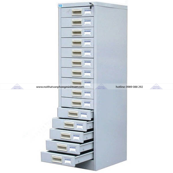 • Tủ gồm 15 ngăn kéo đựng File chuyển động bằng cơ cấu ray thép uốn.