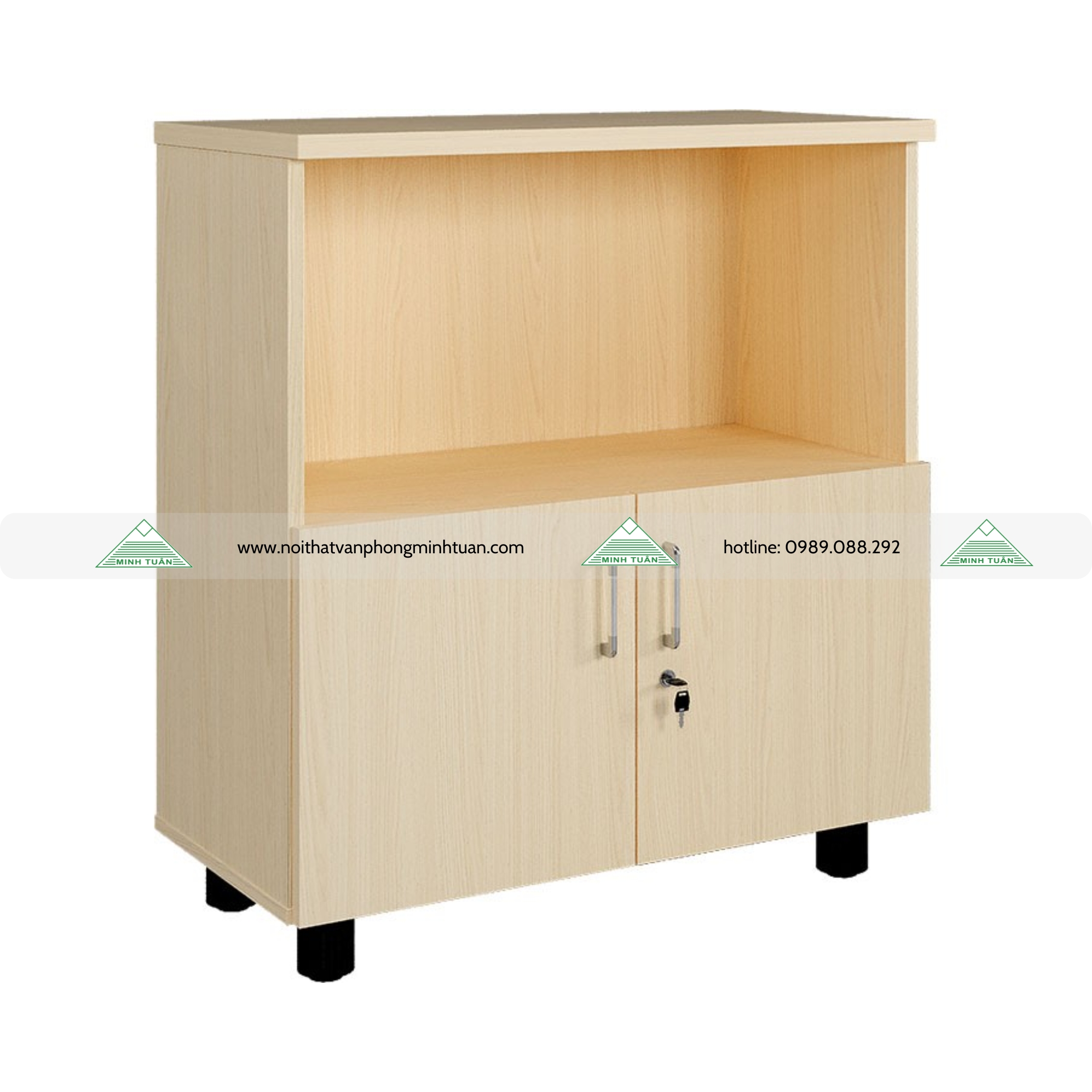 - Tủ tài liệu thấp có 2 khoang để file, tủ không cánh chất liệu Melamine