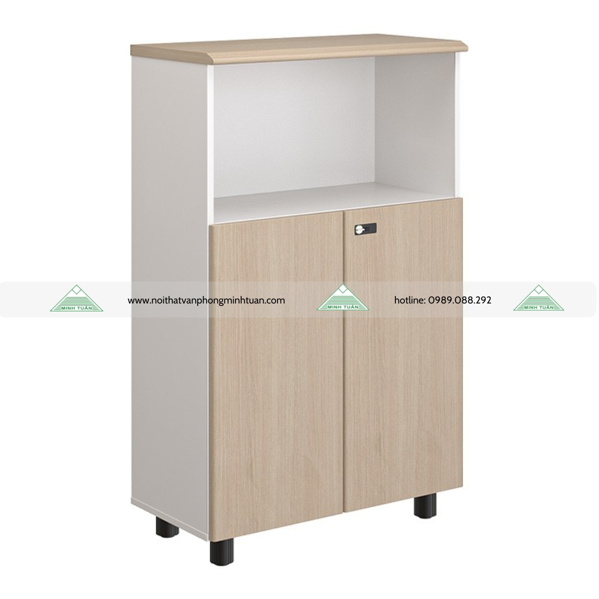 - Tủ tài liệu NTV1260SD chất liệu Laminate kết hợp melamine, gồm 2 cánh lửng có khóa số.